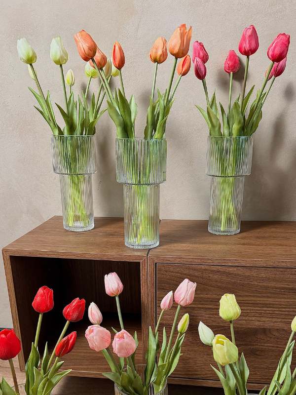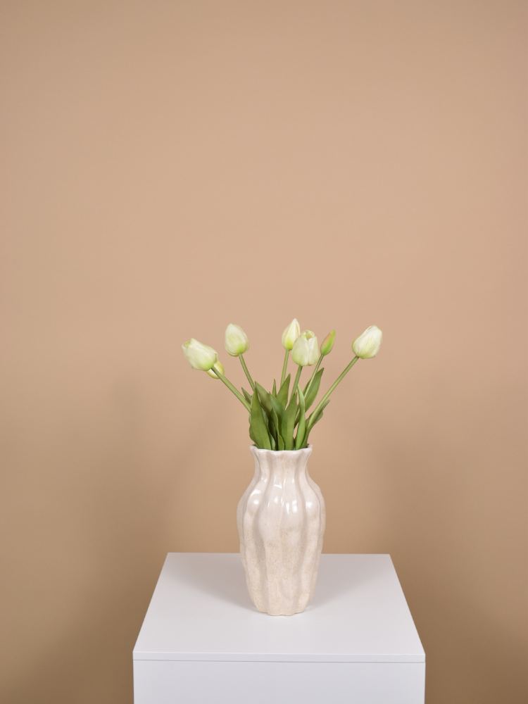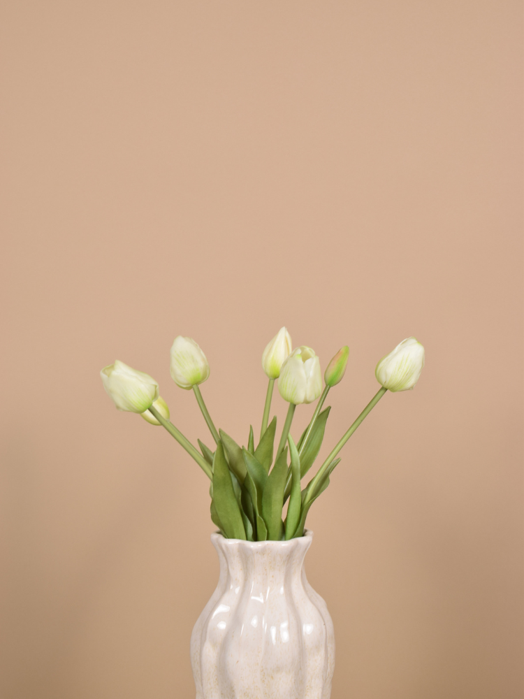 Ben jij ook zo gek op tulpen? 🌷🤍 Deze zijden witte tulpen zijn bijna niet van echt te onderscheiden. Hun zachte uitstraling past in elk interieur. Elke bos bestaat uit 7 stelen, prachtig als los boeket of gecombineerd met onze andere tulpenkleuren. In het voorbeeld zie je één setje.